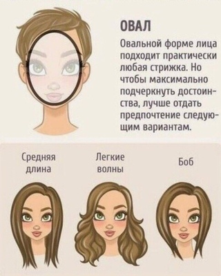 Женщине или мужчине с овальным типом лица подойдут практически любые прически. Выбор зависит от структуры, длины волос, собственных предпочтений.