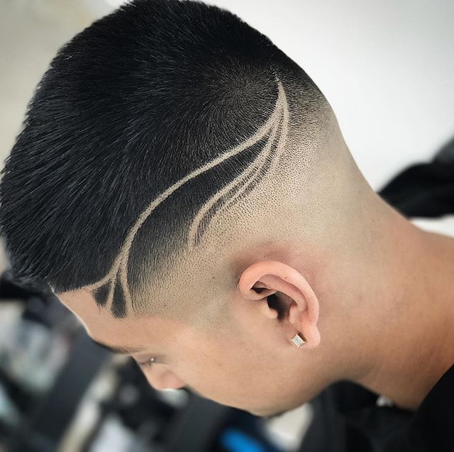 Несмотря на то, что плавные переходы уже выглядят великолепно, они создают еще лучшую основу для сложных линий. Этот образ сочетает в себе лысый переход с дизайном перьев, создавая ультрасвежий и современный стиль.