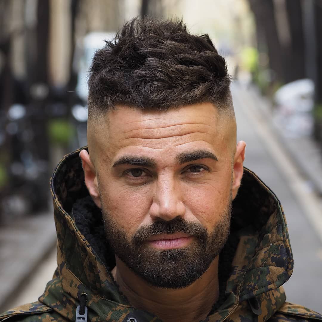 Next Cut Barbershop Ирокез с бородой? Почему нет. Выцветание кожи отделяет этот волнистый ирокез от коротких и фигурных волос на лице.