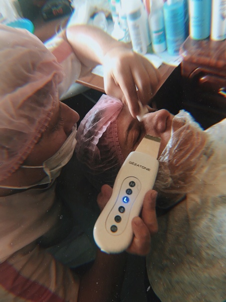 — Трихологический пилинг. Высокоэффективная методика системного оздоровления волосистой части головы. Процедура начинается с удаления ороговений специальным аппаратом.