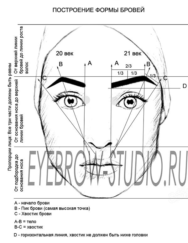 Стандартные правила формирования бровей: