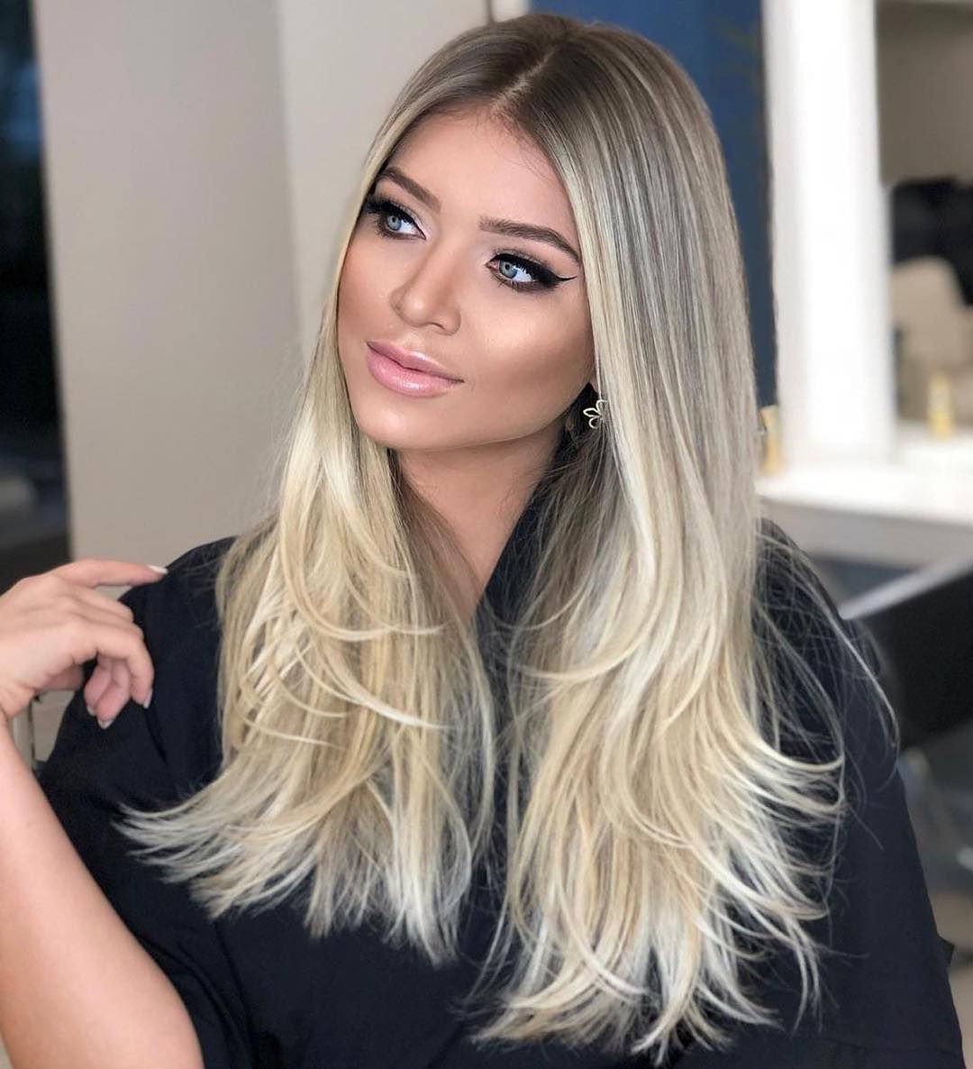 Теплый блонд с глубоким контрастным базовым цветом.Медово-русые волосы с темно-коричневыми корнями добавляют глубины корням и делают блонд более драматичным. Резкий контраст светлых кончиков и темно-русых светлых волос естественным образом смешивается в процессе роста. Длинные слои также придают изящную плавность цветовой гамме.