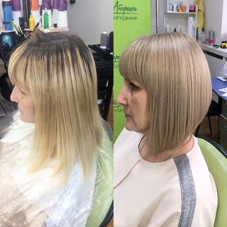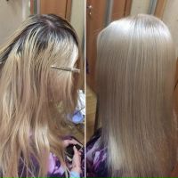 - Локоны были окрашены, на них выполняли мелирование – в этом случае требуется тонирование.