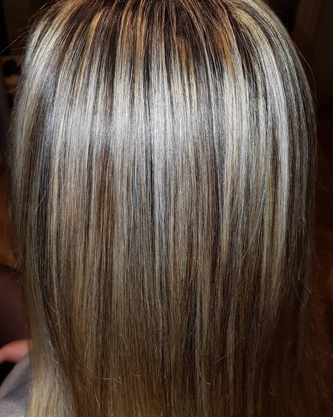 При коррекции должна повториться частота и оттенок мелированных волос, а также сгладиться переход благодаря тонированию.