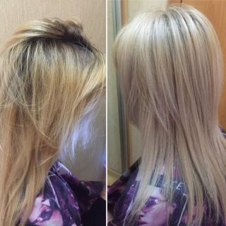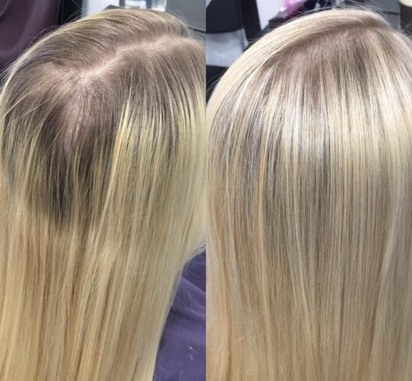 В этом случае не менее важна регулярность окрашивания 1 раз в 4-5 недель. Чем меньше отрос корень, тем меньше труда составить нанести смесь блондирующей пудры с окислителем на эту зону.