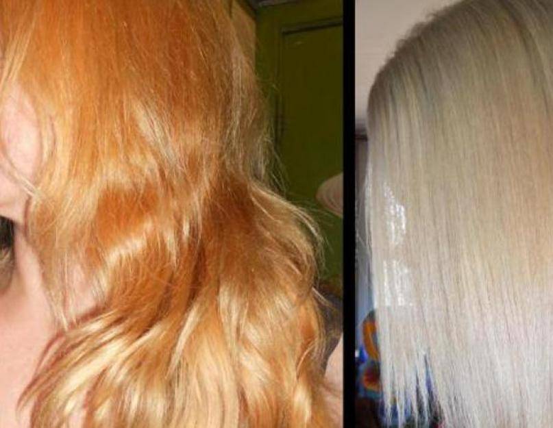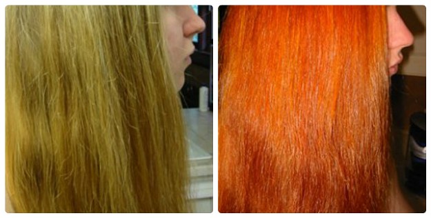Коллаж — результат после осветления (огненный апельсин) и далее — уже после стойкой краски.