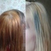 - волосы, окрашенные только хной, можно обесцветить до желто-оранжевого результата. Фоном осветления это язык не поворачивается назвать, поскольку он тонируется пигментом хны, который в адекватных условиях(опыт №1) вывести не удалось. На мой взгляд, если это дело затонировать с применением соответствующих корректоров, то можно получить носибельный цвет нейтрального или теплого оттенка 8, реже 9 УГТ, но со временем цвет будет скатываться в теплую медь.Но цвет будет носибелен. Холодный же оттенок не удастся получить, поскольку есть огромный риск в конечном итоге стать зеленой.
