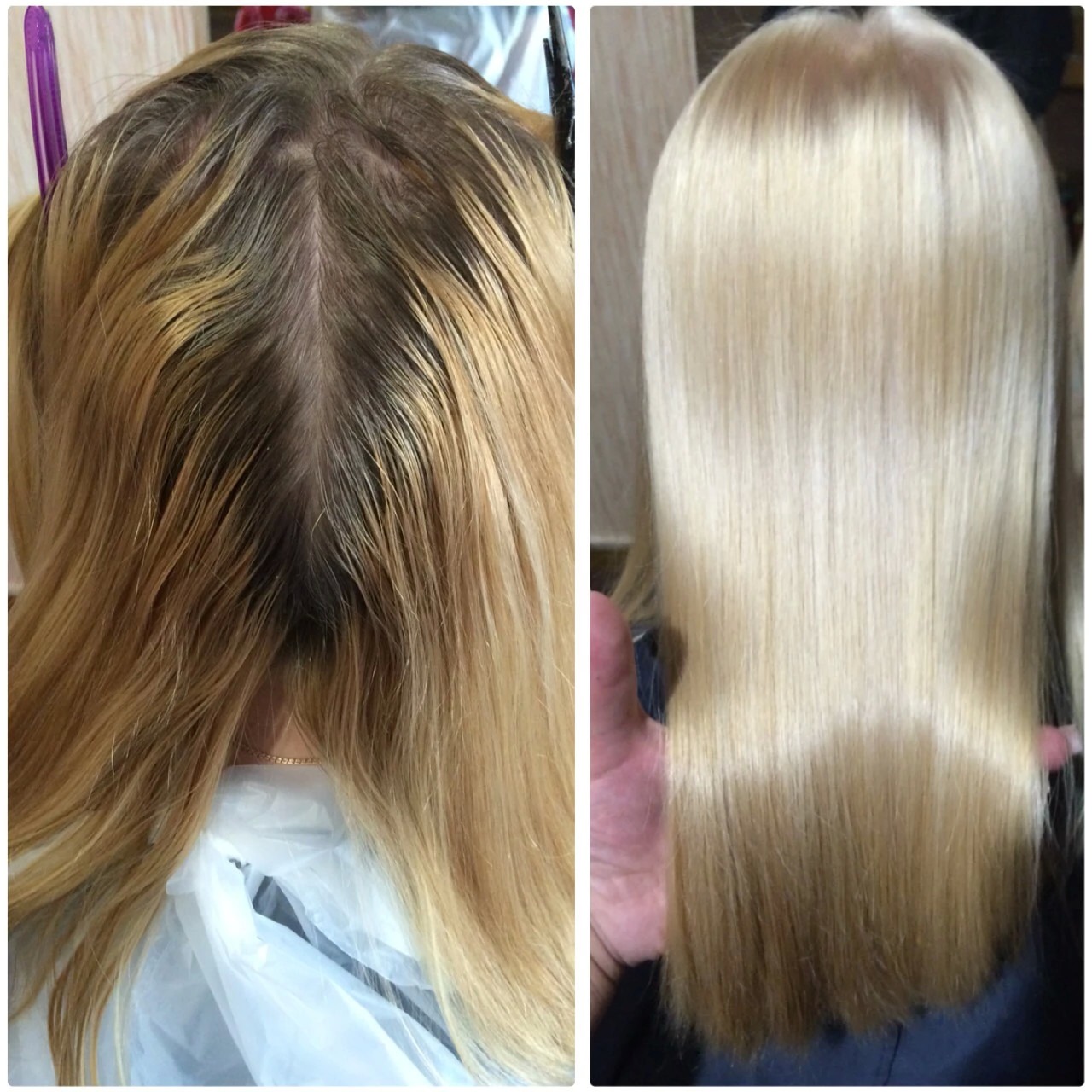 Затем было трёхчасовое осветление (мастер наносила осветляющий состав несколько раз) и окрашивание стойкой краской.
