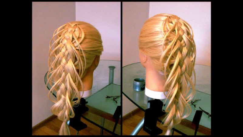 Учебное пособие по 5-прядной косе Длинные прически средней длины