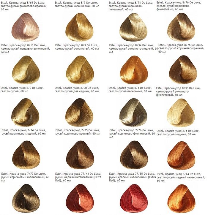 Список непрофессиональных красителей от «Эстель» (светло-русый пепельный оттенок есть в каждой палитре, так как сейчас он на пике популярности):