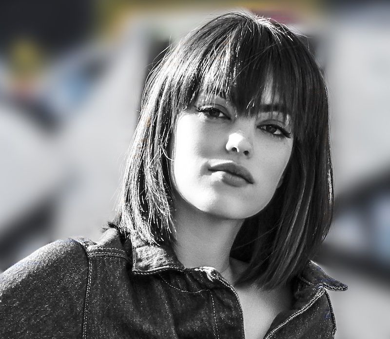 Для резкого, но милого стиля попробуйте соединить острый боб с детской челкой, как у Мейзи здесь.