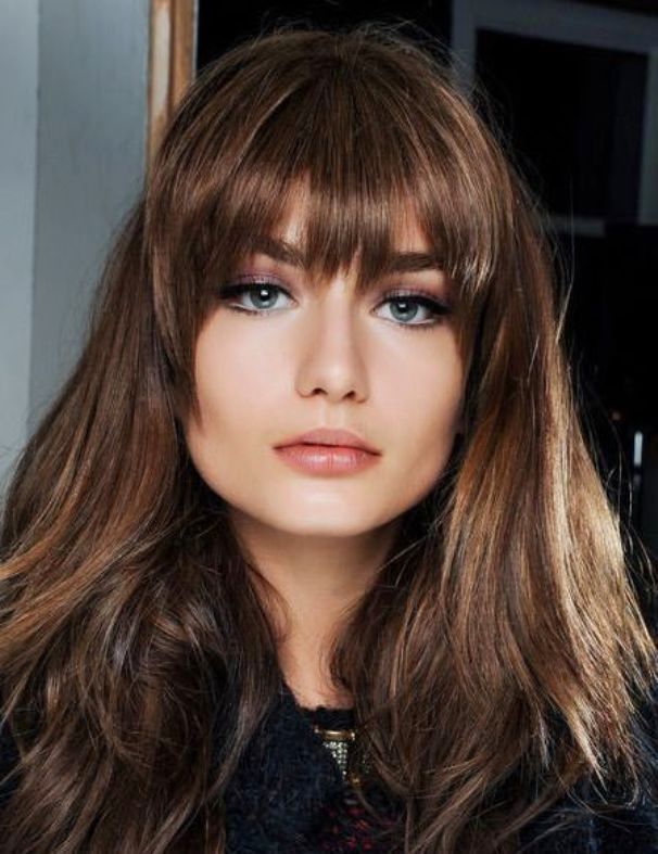 Стоит отметить, что обладательницам длинных и ухоженных волос крупно повезло. Они всегда выглядят маняще, привлекательно и женственно. И челка им только придаст обаяния.