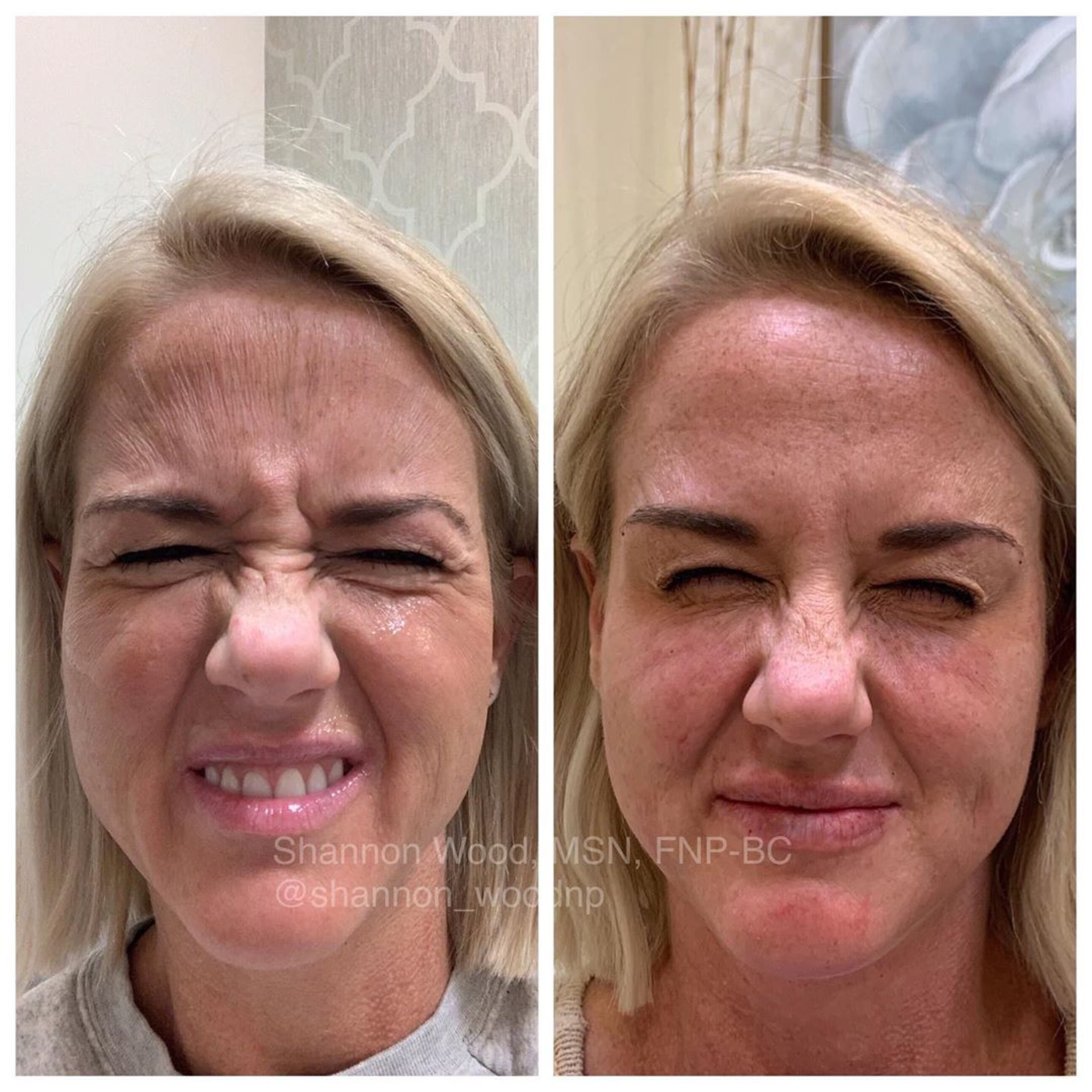 Избегайте любого физического давления, лежания на лице или растирания области инъекции в течение нескольких дней. Однако вам не нужно избегать каких-либо выражений лица; хмурый взгляд, улыбка и другие выражения лица могут способствовать более раннему проявлению результатов ботокса!