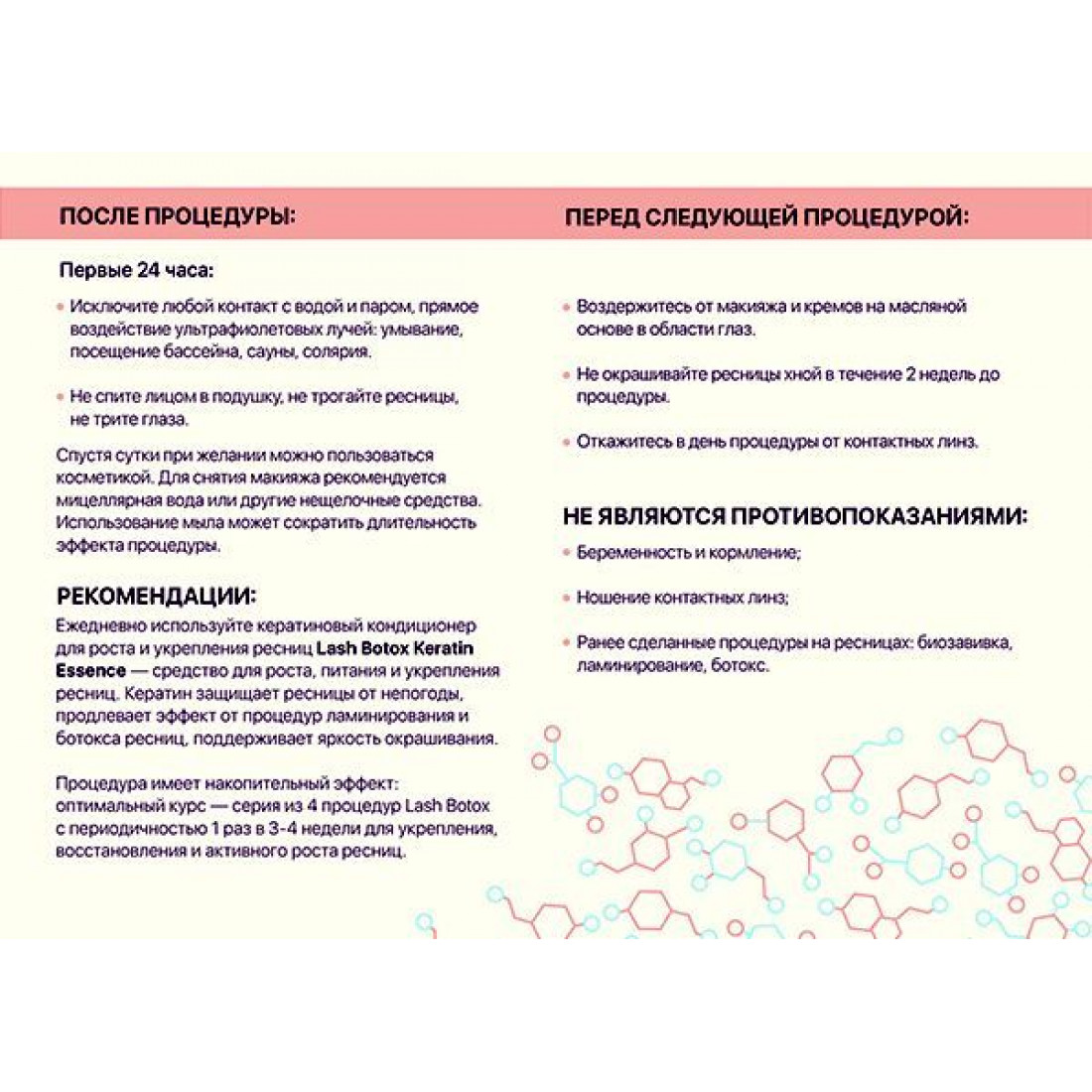 Что же касается непосредственной подготовки перед процедурой, то ничего особенного делать не нужно. Если вы пришли после рабочего дня, то макияж вам аккуратно снимут перед процедурой, также обработают зоны антисептиком.