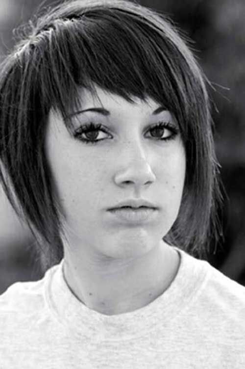 Круглолицым красавицам предлагается носить косую челку на бок, что бы визуально вытягивать круглую форму. Именно этот вариант челки с ровной текстурой принято подкручивать на концах для праздничных мероприятий.