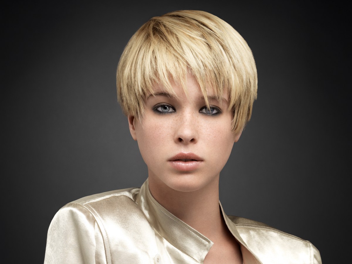 Применяя различные техники и приемы формирования короткой челки, знающий стилист с легкостью исправит некоторые недостатки внешности и сгладит диспропорции.