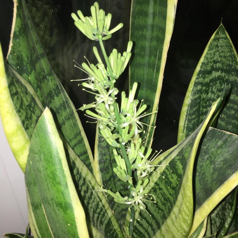 При правильном культивировании цветок может цвести в начале весны. Сначала появляется цветоносная стрелка, а уже потом на ней формируются цветы согласно сорту Щучьего Хвоста. Цветы распускаются в вечернее время и благоухают всю ночь, наполняя квартиру ванильным ароматом.