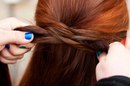 2. С одного края возьмите небольшую прядку. Присоедините её к другой стороне волос.