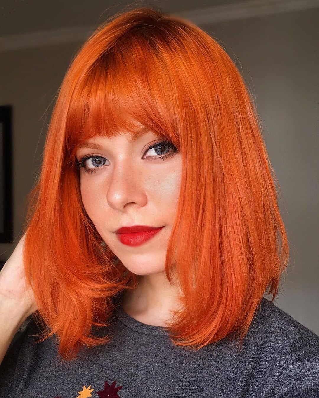 Женский красный парик Боб средней длины с прямой челкой набок – nevermindyrhead