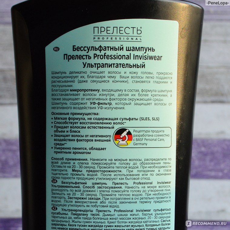 Рецептура разработана совместно с BASF Personal Care GERMANY.