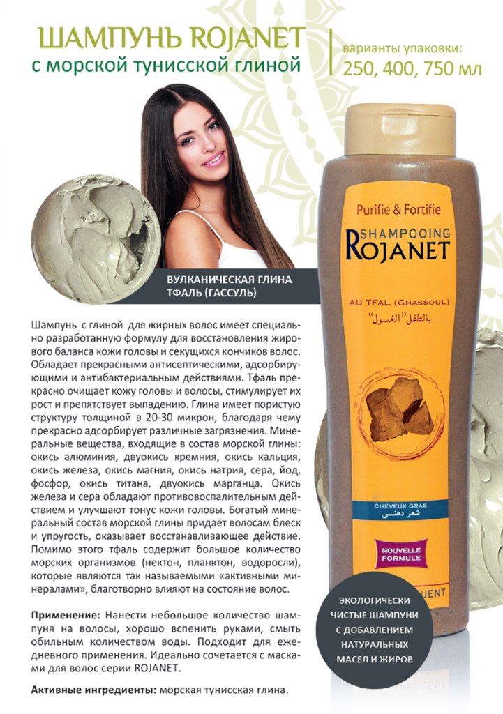 Шампунь для жирных волос нормализует выделение себума и мягко контролирует жирность кожи головы, не пересушивая её. Глина гассул насыщает волосы полезными микроэлементами и способствует поддержанию объёма причёски. Экстракты мать-и-мачехи, череды и облепихи, входящие в состав, стимулируют рост волос и борются с выпадением, способствуют росту новых волос.