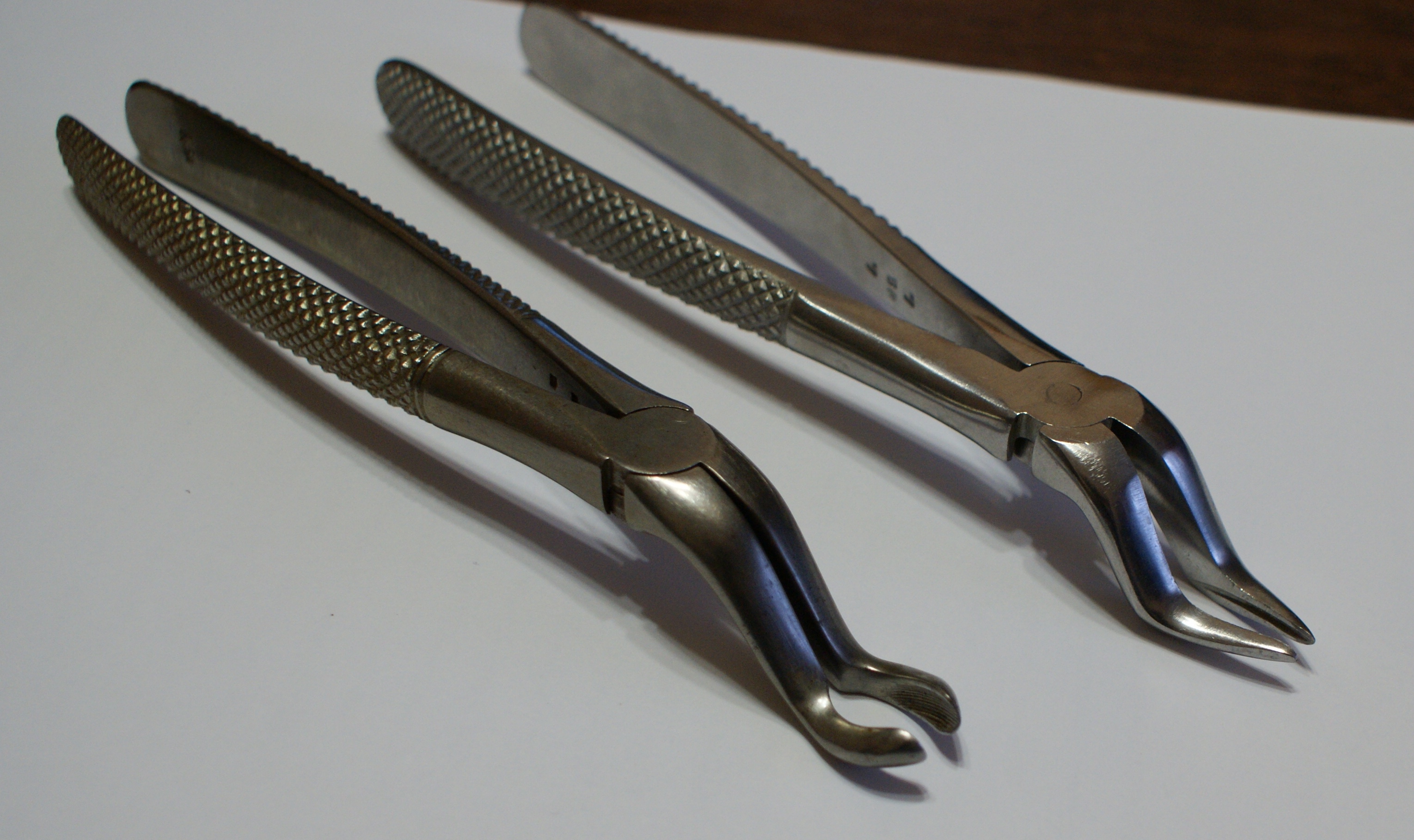 Они обычно предназначены для работы с зубами, которые расположены достаточно глубоко в ротовой полости, например, верхний третий моляр. - Большинство моделей являются универсальными, то есть с их помощью можно работать как с зубами левого ряда, так и правого. Но существуют некоторые разновидности щипцов, которые бывают только правосторонними или только левосторонними.