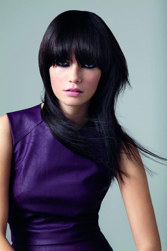 Если уложить многослойную челку на бок, получится загадочный образ.