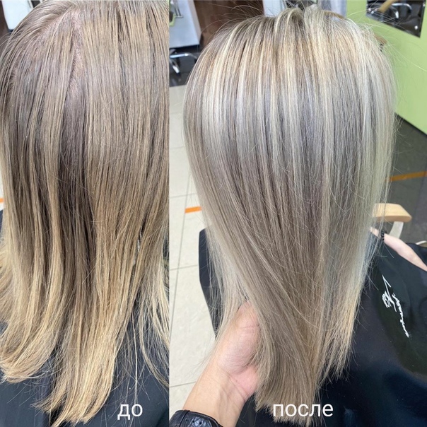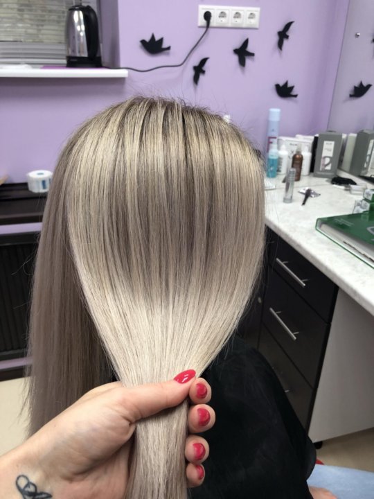- После этого будет нанесен тоник для волос. В большинстве случаев стилисты делают корни темнее и растягивают цвет на всю длину. В остальных случаях корни останутся нетронутыми, а осветленные пряди приобретут оттенок блонда.