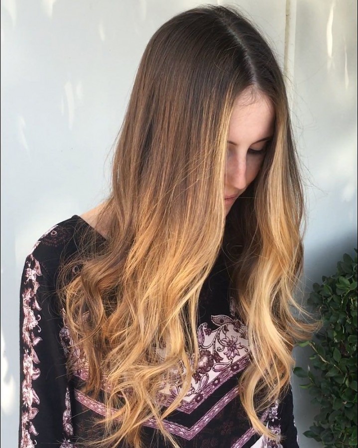 «Сомбре» — это все тот же переход от более темного оттенка у корней к более светлому на кончиках волос. Хотя окрашивание «омбре» и помогает размыть границу между двумя цветами (за счет этого «омбре» спасительно для девушек, которые вовремя не подкрасили корни), переход все равно получается заметным, достаточно резким. «Сомбре» как бы растягивает этот переход по всей длине волос, поэтому результат выглядит максимально естественно, будто верхние пряди слегка выгорела на солнце, а затем постепенно отросли. На фоне всеобщей тяге ко всему натуральному эта тенденция выигрывает.