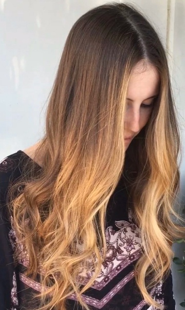 - Визуально разделить длину волос пополам. Нанести краску на нижнюю часть, растушевать границы. Через 30 мин. голову помыть, локоны высушить.