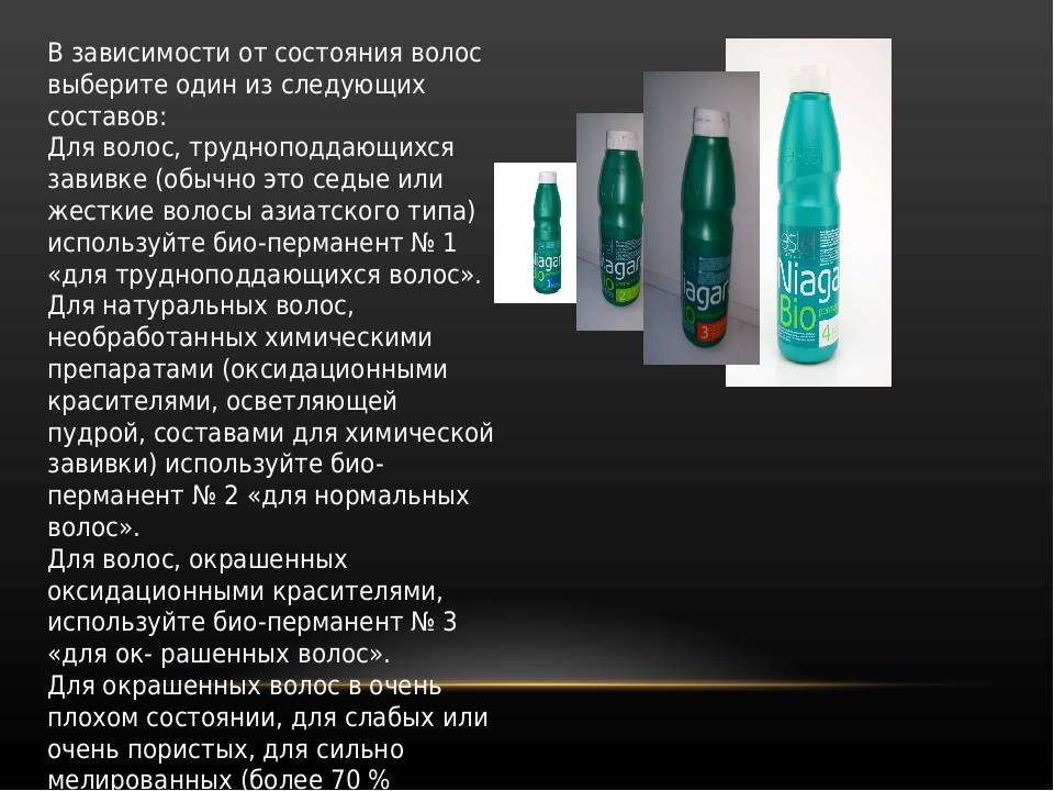 На состояние кожи головы вряд ли он повлияет. Однако поврежденные (ломкие и сухие) волосы могут пострадать от завивки. Жесткие волосы дольше держат завивку и лучше ей поддаются, а жирным волосам завивка может быть даже показана как лечебное средство, поскольку имеет эффект подсушивания. Красить волосы стоит уже после карвинга и стрижки. Менять цвет волос лучше не раньше чем через 72 часа после их обработки химическим составом, при этом желательно использование безаммиачного красителя.
