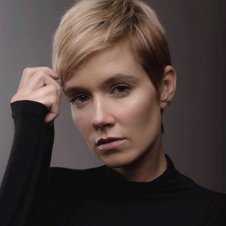 Яркий пример – гарсон с открытым затылком, прикрытыми висками и филированной длинной чёлкой, а также сессон – выполняется с плавными переходами, формируется густая прямая или полукруглая чёлка. Ещё один вариант – ёжик, его выбирают смелые женщины. Волосы остригаются коротко, чёлка оставляется небольшая, укладывается на бок. Плюс андрогинных образов в том, что они держат форму без укладки.