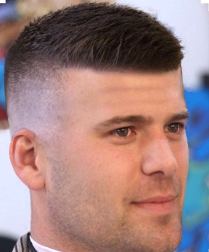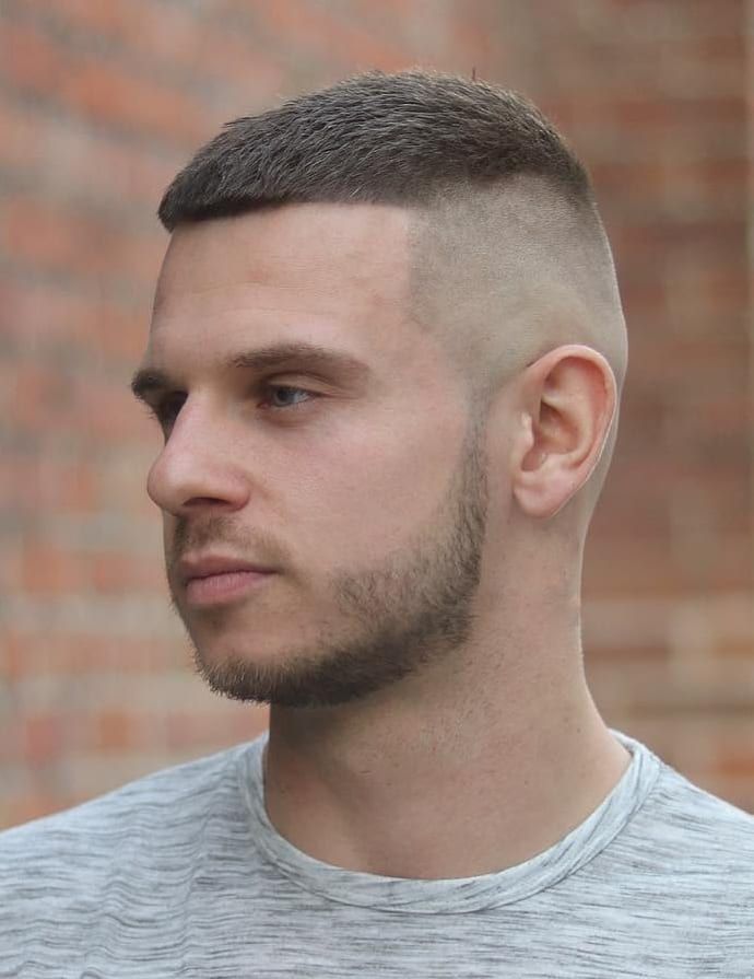 Данная разновидность подходит парням, которые любят стрижки без челки. Верх волос состригается до 2 см, бока – 0,5 см.
