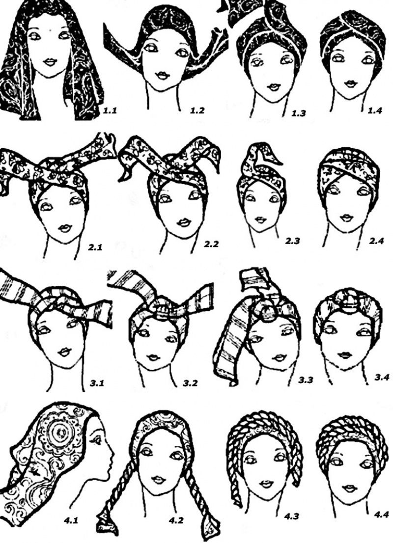 в стиле «зубная боль». Затем скрестите концы с одной стороны головы