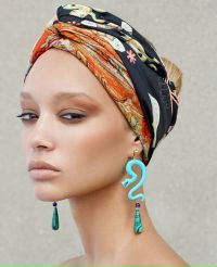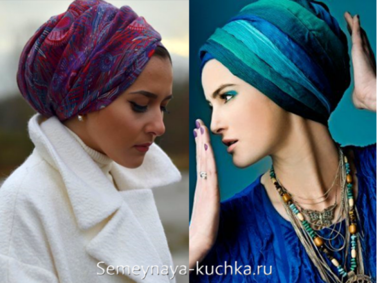 Кстати, платок в виде тюрбана прекрасно смотрится с длинными распущенными волосами.