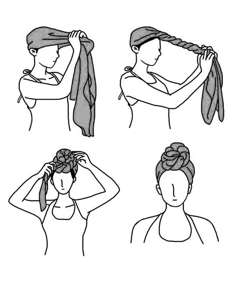 - Оберните концы ткани завязкой, чтобы волосы были полностью закрыты.