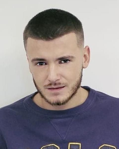 Переходный вариант между классическим полубоксом и боксом. Очень короткая стрижка в стиле «милитари» (до 3-4 см на макушке и 1 см на затылке), которая подчеркивает мужественный образ, выглядит лаконично и непритязательно.