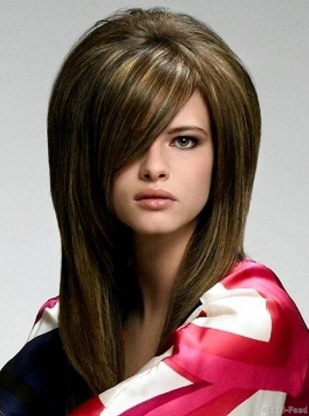 Лучше всего с такой формой сочетается средняя или умеренно короткая длина волос. Оптимальным будет косой боб с пышной челкой или укладка в стиле «ретро» с завернутыми внутрь кончиками. Если же вы все-таки любите длинные волосы, то волны или локоны помогут создать вам тот образ, который вы хотите. Чтобы добавить дополнительной легкости и фактуры, можно мелировать пряди.