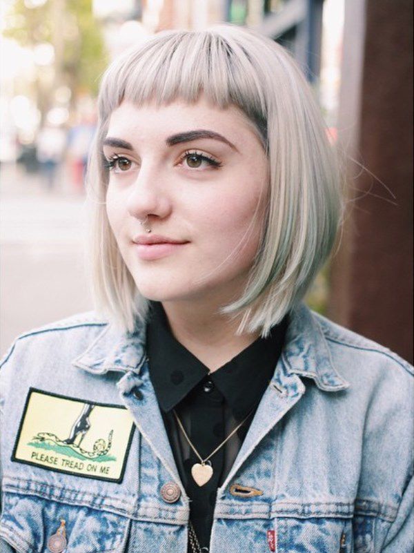 19. Многослойный боб с челкойЭта блондинка-гибрид потрясающая! Тупой боб, который прилипает к голове; идеально подходит для женщин, которые не любят чувствовать свою прическу, даже если знают, что она у них отличная.