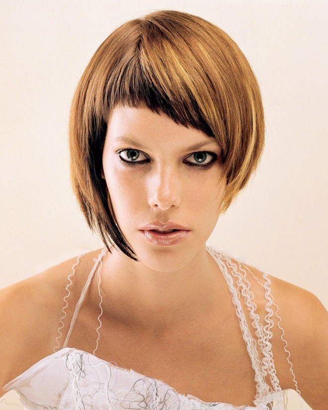 Особенно хорошо выглядят женщины с круглым или овальным лицом, решившиеся на каре с короткой челкой. Кроме того, этот вариант предпочтителен для обладательниц крупных черт. На передний план выдвигается лицо, а вся причёска имеет округлость, объём и динамику.