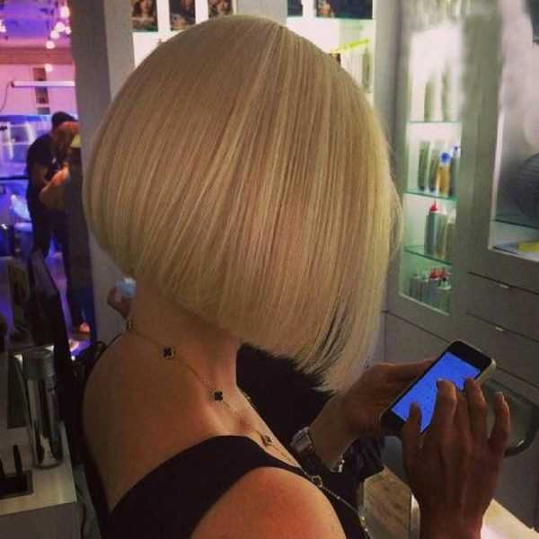 Такая прическа создается состриганием прядей под углом, чтоб сзади был затылок короче, а передние пряди были длиннее. Выглядит такая прическа очень элегантно и женственно, позволяя создавать загадочный образ.