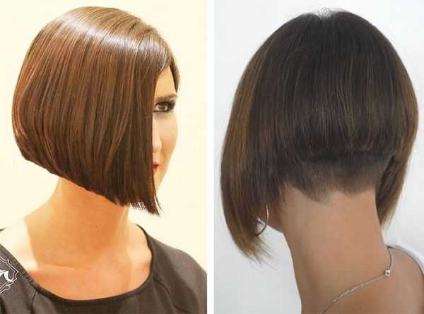 Эту стрижку в 2019 часто выполняют на средние волосы. На фото – вид спереди и сзади – можно посмотреть, чем она характерна. Округлость формы, специфический затылок сзади, и словно бы классическое Каре – спереди. Сейчас она очень популярна среди дам любого возраста. Шевелюра выглядит ухоженно и стильно, поэтому эту прическу можно носить ежедневно, и на вечер она будет актуальна и свежа.