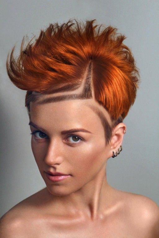 Женские стрижки, привлекающие внимание А как же женские стрижки креатив? Здесь также очень распространен вариант с выбритыми боками, затылками и узорами на них. Любые самые обычные короткие стрижки креативнее смотрятся благодаря одной лишь покраске волос в нестандартный цвет. Но стоит сразу понять, что у вас не выйдет произвести должное впечатление на окружающих, если вы возьметесь за покраску самостоятельно. Признаемся честно, это будет выглядеть очень убого. Лучше уж обратиться за услугой к хорошему мастеру. Таким же образом снизится вероятность того, что вашим волосам будет принесен огромный вред. Довольно эффектно у женщин смотрится укладка ежик.