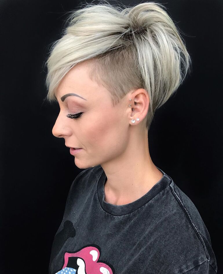 Стрижка пикси — смелый выбор для женщин с короткими волосами. Эта стрижка олицетворяет мятежный и панк-личность, но это не обязательно должно означать это. Стрижка пикси с выбритыми боками — это современный образ, который обычно можно увидеть у молодых женщин.