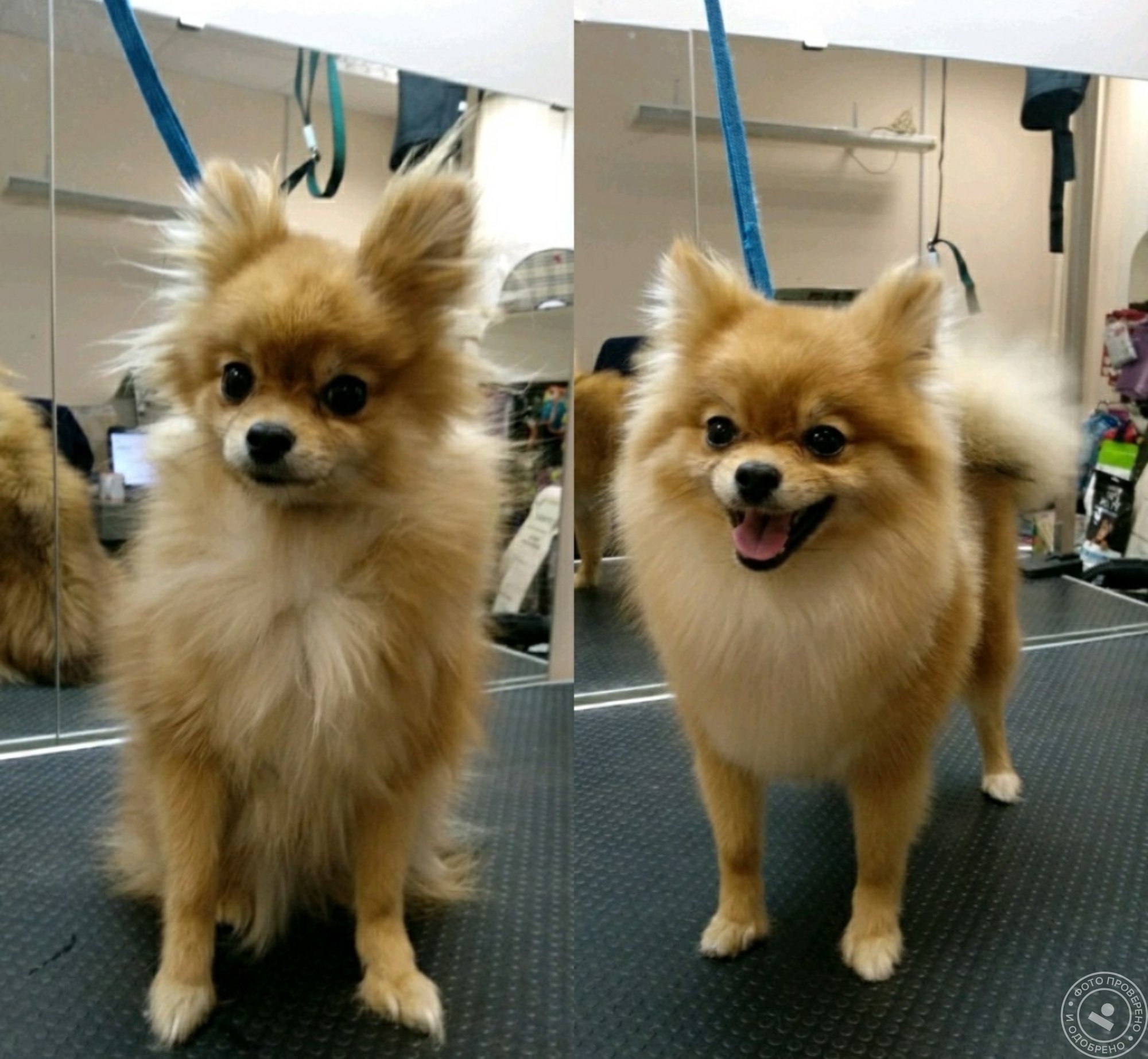 Ниже, в галерее представлены фото шпица до и после стрижки, груминг щенков шпица — некоторые работы наших грумеров.