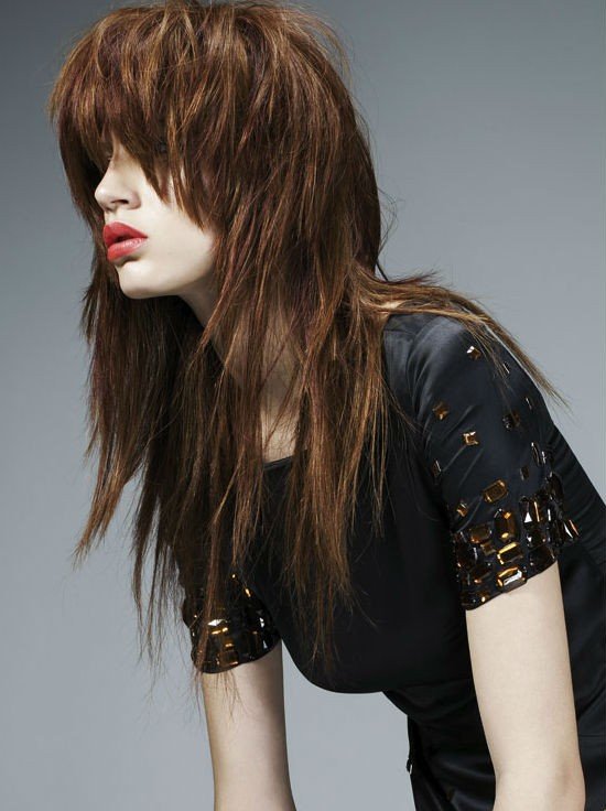 Многоуровневые стрижки на длинные волосы с косой челкой