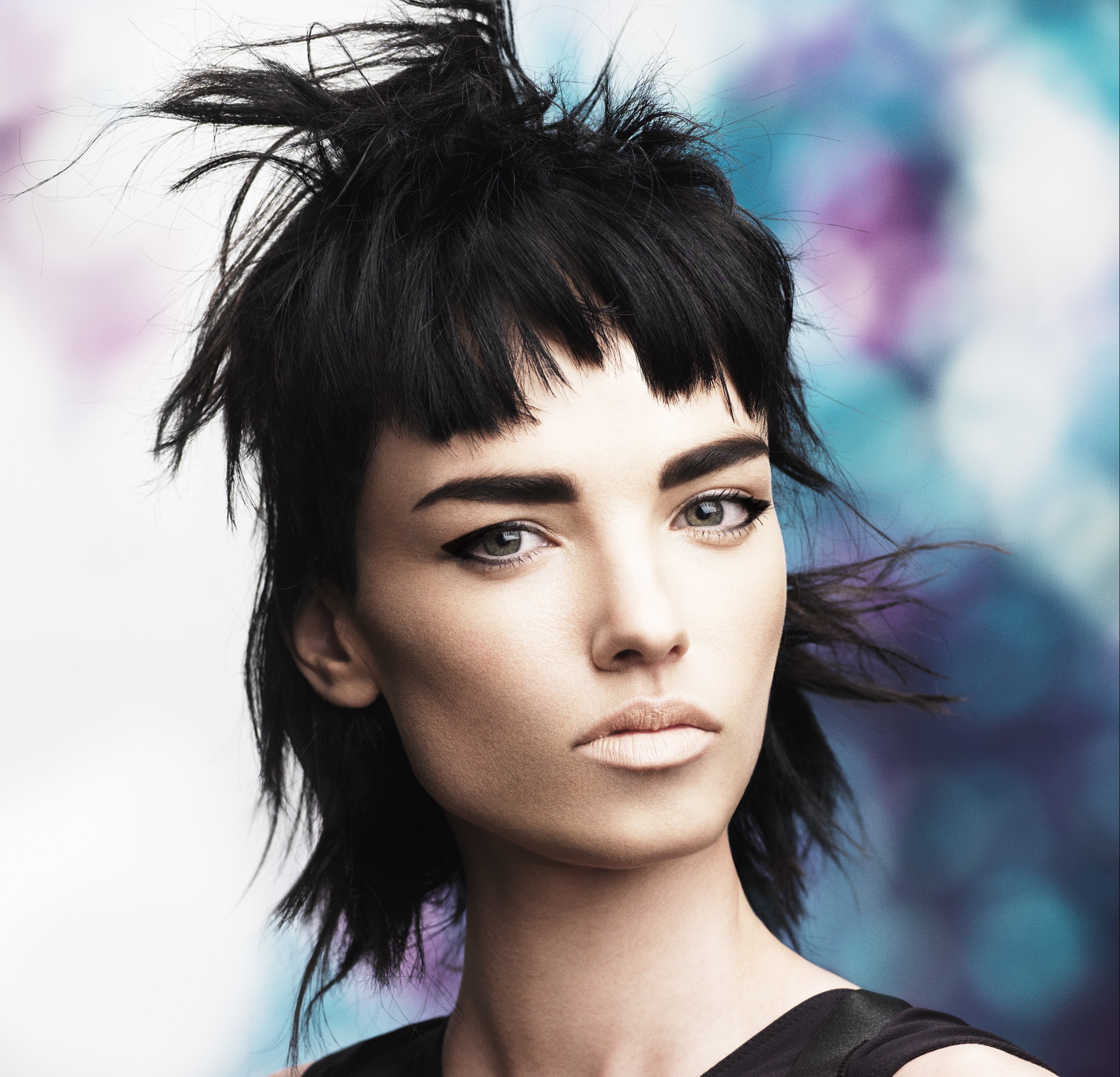 Посмотрите как стрижка может преобразить и изменить черты лица в лучшую сторону! Многослойный боб хорошо подходит тонким волосам, а косая короткая челка скрывает высокий лоб.