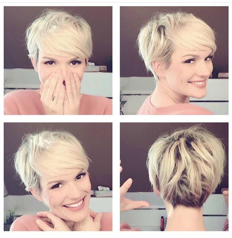 Как только волосы актрисы слегка отрасли, она тут же снова покрасила их в светлый. При этом слегка отрастающие темные корни вовсе не портят ее прическу, а наоборот, дают дополнительный объем. Смело можно взять данный прием на заметку — с короткой стрижкой он работает.