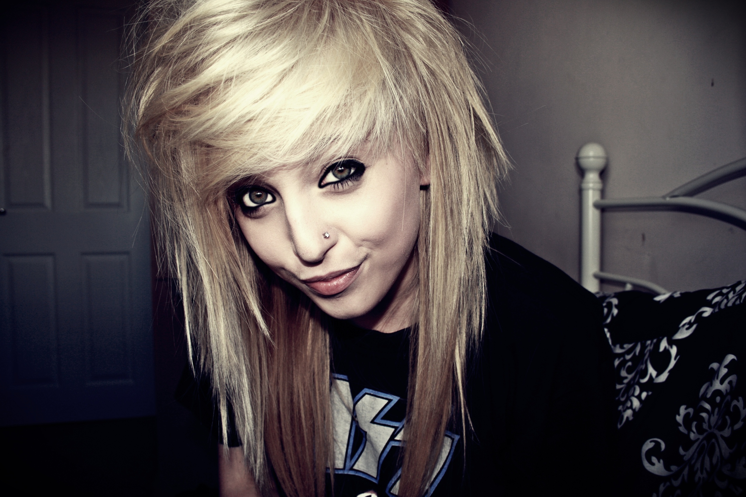Кроме того, для создания образа эмо, волосы должны иметь черный цвет. Часть их окрашивается прядями в противоположный оттенок, некоторые пряди специально осветляются, а затем окрашиваются в розовый, рыжий или любой другой светлый тон.