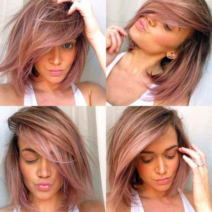 Чтобы достичь такого окрашивания к блонду добавляют розовый оттенок. В итоге цвет получается бледно-розовым, что выглядит женственно и интересно.Пепельно-русый